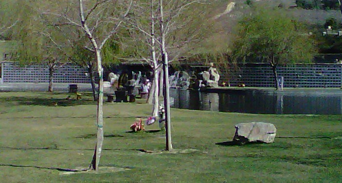 Next we drove over to the Sycamore Lake waterfall area. The area is a small manmade lake with waterfall feature in the valley over the hill of the main property.